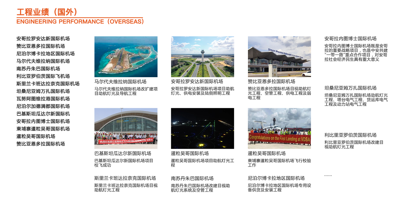 上海浦東國際機(jī)場第一至第五跑道助航燈光工程,機(jī)場站坪照明工程及圍界安防工程,累計(jì)合同額7.28億元人民幣。
