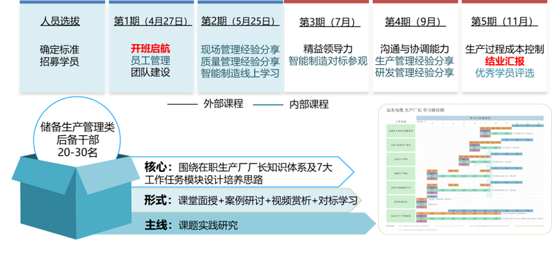 遠(yuǎn)東于行業(yè)內(nèi)率先引入精益生產(chǎn)”、智能制造”理念,遠(yuǎn)東大學(xué)生產(chǎn)學(xué)院針對(duì)不同條線、不同崗位導(dǎo)入精益生產(chǎn)各個(gè)模塊的學(xué)習(xí)內(nèi)容,舉辦有精益廠長(zhǎng)特訓(xùn)營、精益班組長(zhǎng)特訓(xùn)營、精益標(biāo)桿游學(xué)項(xiàng)目,同時(shí)開辦了匠師項(xiàng)目-面向中高層管理人員、匠研項(xiàng)目-面向研發(fā)人員、匠英項(xiàng)目-面向基層管理人員、匠工項(xiàng)目-面向一線操作類人員。